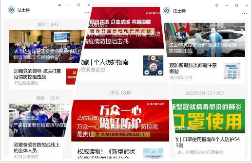 點擊量:1381一、利用“兩微”及時廣泛傳播防疫知識公司團委及時響應集團黨委號召,立即行動,通過團干部微信工作群和“法士特青年”微信公眾平臺及時轉發相關政策和防